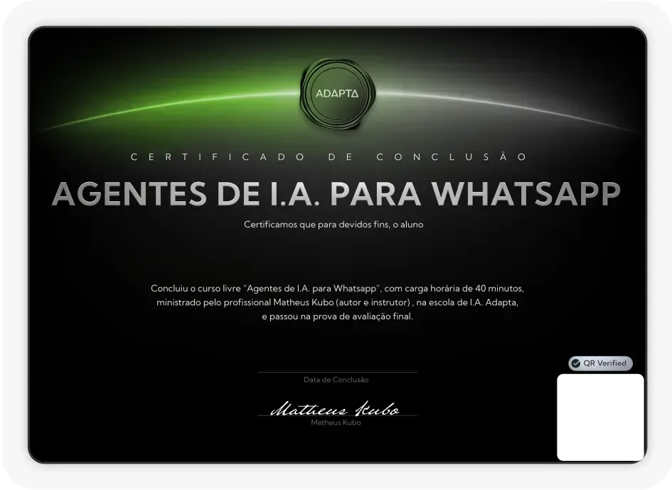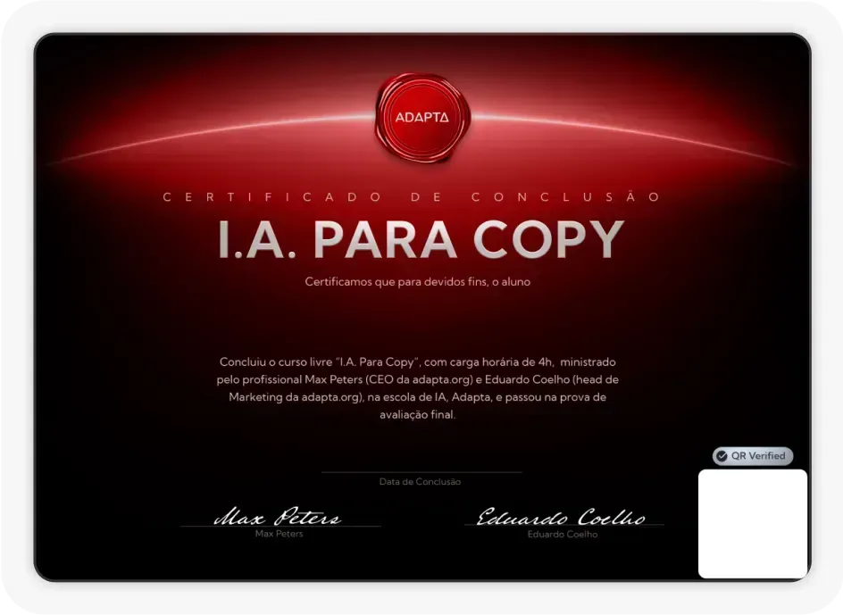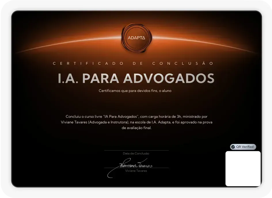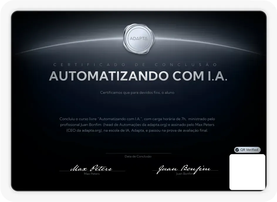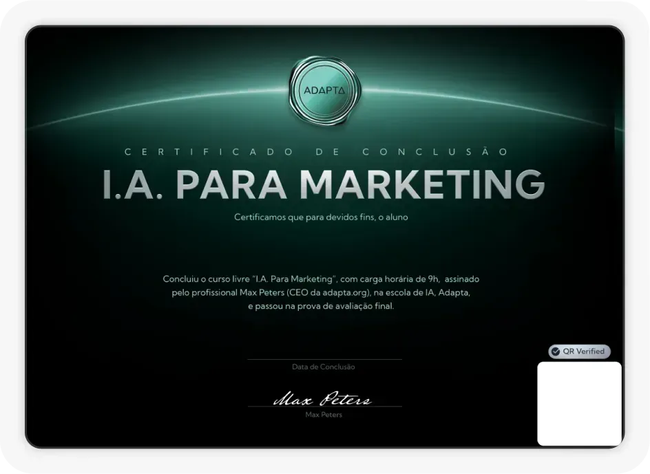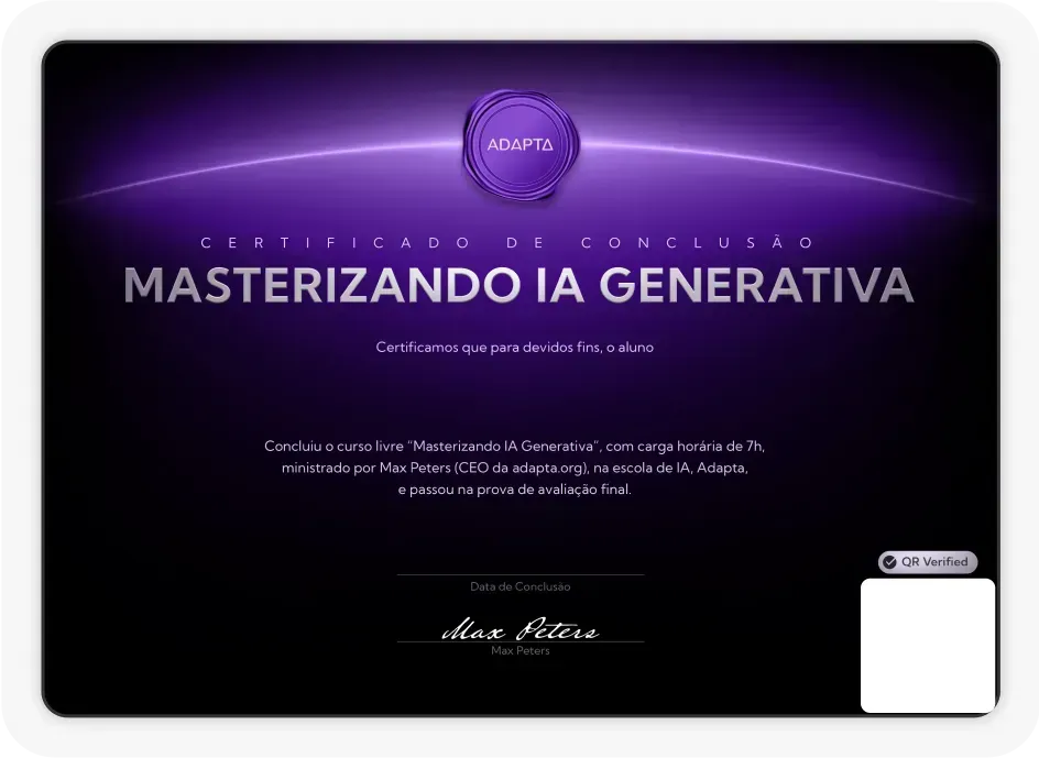 Certificados emitidos pela Adapta referência nacional em IA generativa para negócios.