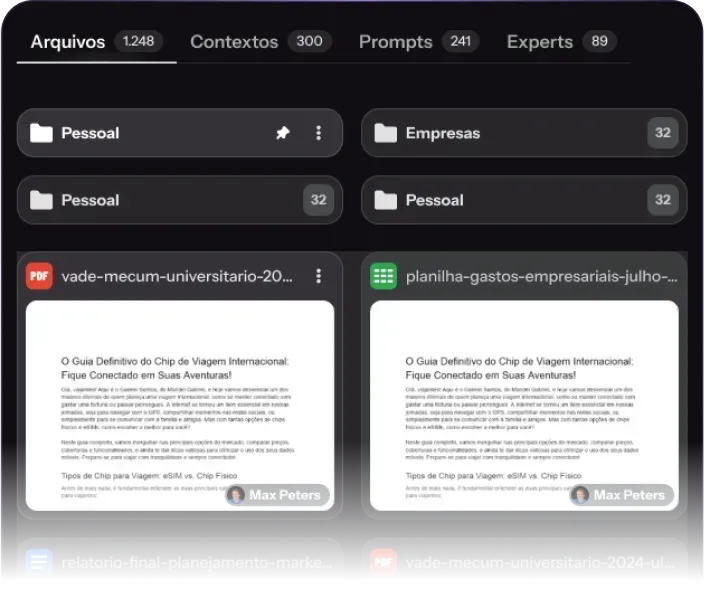 Faça a Gestão de Arquivos, Contextos, Prompts e Experts da sua empresa de forma completamente centralizada