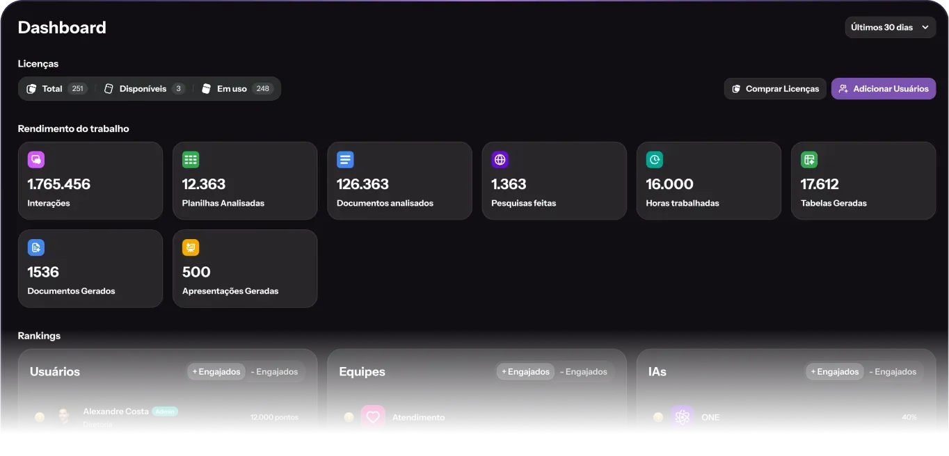 Modelos de IA como GPT-5, Claude 4.5 Sonnet, Gemini 3 Pro e outros estão disponíveis para apoiar análises, criação de conteúdo, estratégia e comunicação tudo com a segurança e performance que sua empresa precisa.